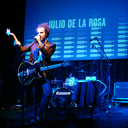 Julio de la Rosa abrió la programación del día y como siempre, su directo fue monstruosamente genial. En esta oportunidad interpretó sus temas en solitario y nos deleito con un exquisito jamming de guitarra, pedales y varios cacharritos sonoros con los que consiguió emocionarnos tanto como el Ribeiro que bebíamos al escucharlo.