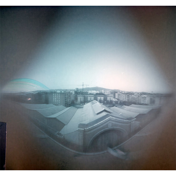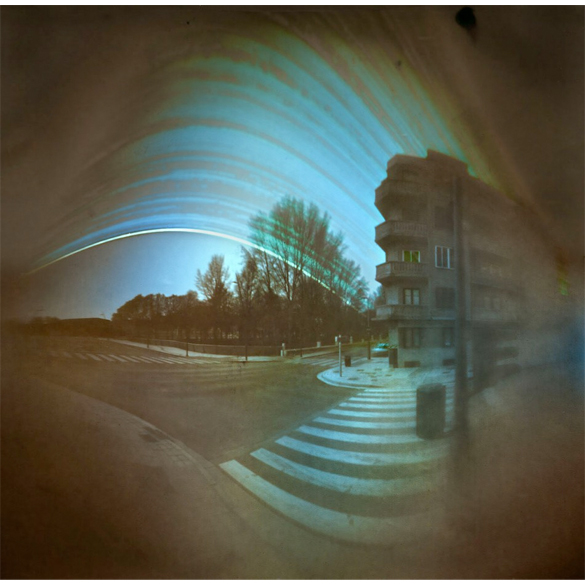 ¿Qué es una cámara estenopeica? Si has tenido la fortuna de aprender fotografía analógica puede que hayas conocido este tipo de cámaras, son solo una caja negra con un agujero, como aquellas que se hacían con botes de nesquik. Nada de lentes. La cámara más esencial y primitiva que existe. En este caso han utilizado latas, de ahí el nombre de la exposición “Time in a can”. Las latas tienen un aspecto estrafalario, y nada parecido a una cámara. Teniendo en cuenta que el fotógrafo las abandona a su suerte durante seis meses al aire libre, conviene que sean resistentes y estén bien sujetas y camufladas. Hay algo de robot extraterrestre en estas latas, que nadie sabe que están ahí, pero cada día están observando, pacientemente registrando.
