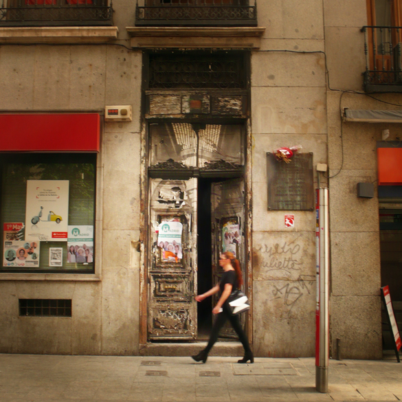 Al pasear por las inmediaciones del portal 55 me fijé en una ferretería. Está allí desde hace más de un siglo. Tiene un escaparate curioso. Entre la quincalla destacan muchas cerraduras doradas, de diversas formas. Imaginé a cualquiera de aquellos abogados posando su ojo distraído, la cabeza llena de trámites, en las solares cerraduras. Manuela Carmena dice que solían irse a tomar algo a la Plaza Matute. Allí cerca sigue estando la plaza con sus bares y sus cañas.