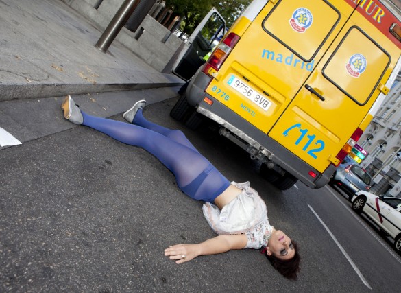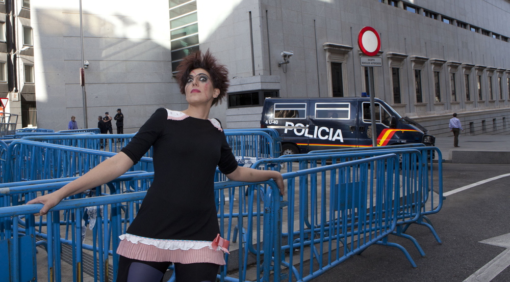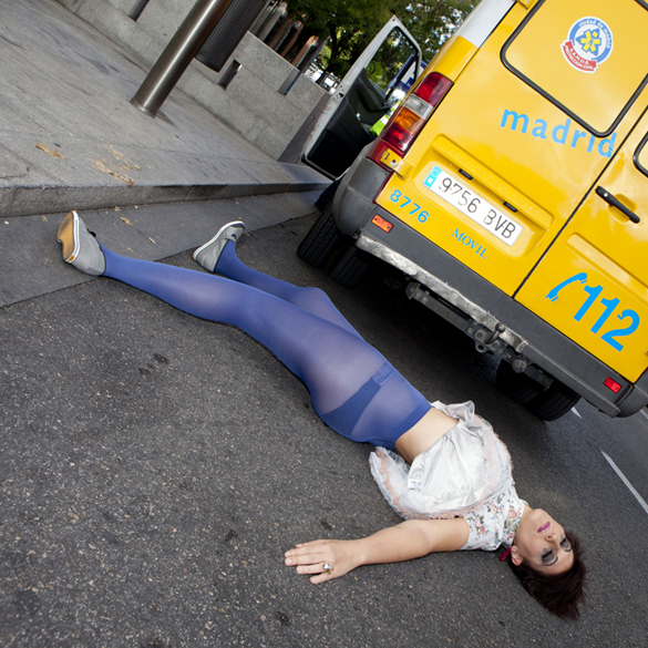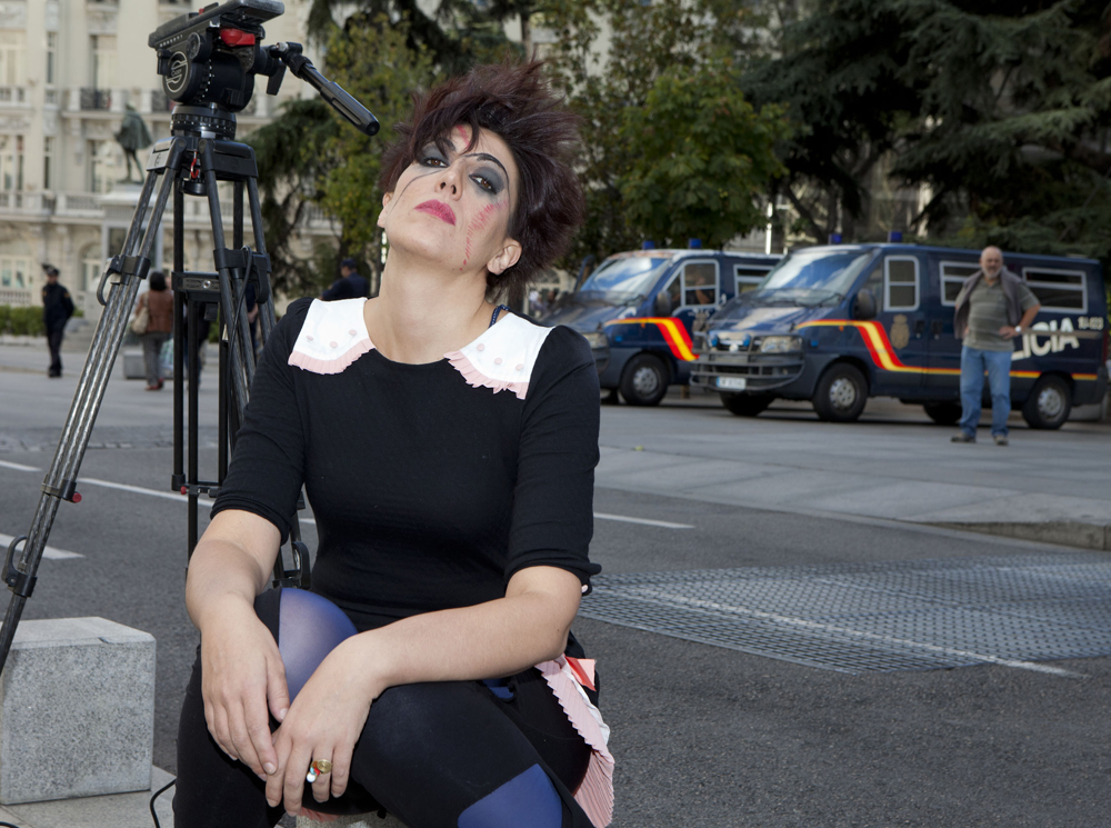 Cuando Matamolu me llamó para hacer el making-of de esta sesión, acepté inmediatamnte porque es amigo, pero me quedé dándole vueltas. Por supuesto me habló de ironía, pero la ironía es un recurso que siempre es huidizo. ¿Era una frivolidad para con lo ocurrido el día anterior? El 25S fue un asunto serio políticamente y hubo heridos. ¿Y la policía cómo reaccionaría? Había sido brutal unas pocas horas antes. El proyecto era raro, muy absurdo… Así que adelante.